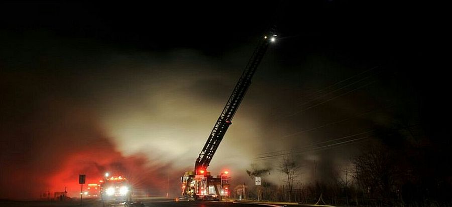 Ladder 58 in operation at night.