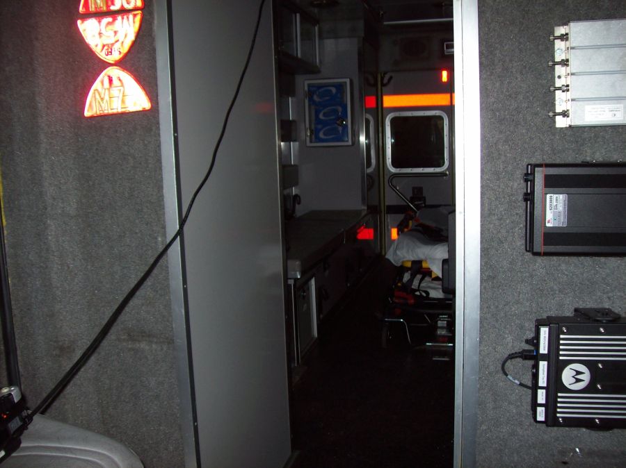 Inside view of patient treatment area from Medic Unit driver's compartment.